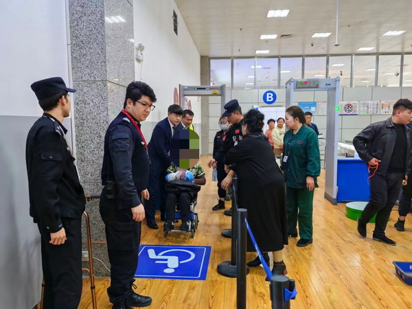由于旅客未事先向航空公司報備使用擔架乘機,旅客服務部工作人員一邊與航司溝通,一邊會同機場醫療評估旅客是否可以乘坐輪椅登機。同時迅速組織各部門快速保障特殊旅客出行,開啟綠色通道,機場醫療與旅客服務部全程引導協助患者及其同行旅客前往登機口,優先安排特殊旅客登機,從值機、安檢、登機全過程為這位特殊患者搭建一條快速、安全的綠色通道。同行人員目睹了整個保障過程,工作人員耐心細致的服務讓他們非常感動,陪同家屬對伊寧機場真情周到服務表示感謝。