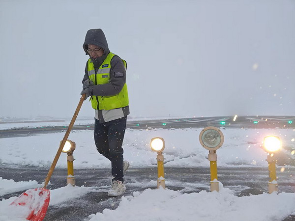伊寧機場工作人員對待此次遲來的降雪保持了高度的警惕性,提前對天氣進行研判,發布降雪預警,要求相關部門嚴陣以待,保證除冰雪設施設備的適用性,密切關注跑道表面狀況,及時發布雪情通告,全力應對降雪可能帶來的不利影響,確保機場航班起降正常以及旅客的順暢出行。