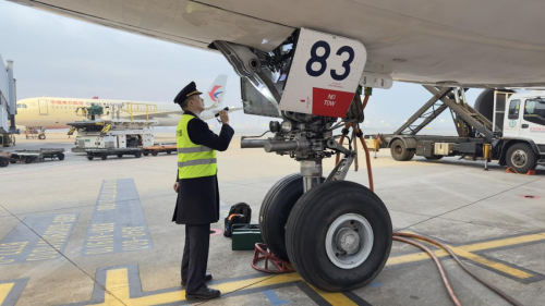 1月14日清晨,南京祿口國際機(jī)場機(jī)坪上,東航技術(shù)江蘇分公司航線機(jī)務(wù)維修人員正在完成飛機(jī)發(fā)動(dòng)機(jī)點(diǎn)火線更換。
