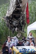 復興航空班機空難,9日搜尋邁入第6天,搜救單位持續出動搜索3名失蹤者。現場并出動吊車吊起飛機殘骸,罹難者家屬看著機體碎片從眼前經過。圖片來源:臺中央社 據臺灣媒體報道,大陸事故調查中心3名調查員9日加入復興GE235航班事件調查,寫下兩岸飛安調查首例,臺灣飛安會執...