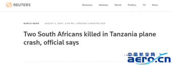 路透社報道截圖 據路透社報道,當地時間周六(3日)晚些時候,一架輕型飛機在坦桑尼亞西部墜毀,機上兩名南非人遇難。 據坦桑尼亞官員稱,墜毀飛機是一架來自南非的四座懸掛式飛機。事發地Sikonge區的官員告訴當地電視臺稱,飛行員和乘客均為南非居民,飛機早上7點半左右從...