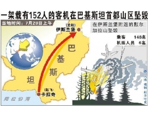 7月28日伊斯蘭堡空難震撼了世界,146名旅客和6名機組人員全部遇難。遇難者中有29名婦女,5名兒童以及2名嬰兒,另有三名外國人。世界許多國家的政要和聯合國都向巴基斯坦發出唁電和慰問信函。 據巴基斯坦媒體報道,這是巴基斯坦歷史上最大的空難。巴航空部門初步...