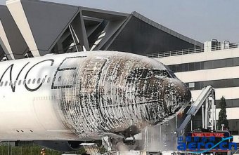 當地時間6月11日,法蘭克福機場一輛拖車牽引漢莎航空A340至航站樓時,拖車突然起火,火勢蔓延至A340駕駛艙。雖然消防員第一時間將火撲滅但客機機頭被大火灼燒受損嚴重,所幸機上并無乘客。(圖片來自:twitter) 來源: 民航事客戶端...
