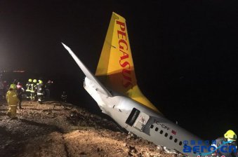 嚇死人!土耳其飛馬航空公司一架客機當地時間1月13日晚間(北京時間1月14日早上)降落在東北部城市特拉布宗的機場時沖出跑道,媒體刊出的視頻和照片顯示,這架飛機頭朝下趴在山崖上,差一點就沖進海里。 綜合外媒報道,低成本航空飛馬航空(Pegasus Airlines)這架PC8622航...