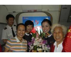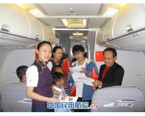 圖1:旅客和乘務組合影留念。攝影:張雅琴 2010 年 10 月 1 日 是偉大祖國61歲華誕,中國國際航空股份有限公司(Air China Limited,簡稱國航)西南分公司全國青年文明號藍色旅途乘務組在成都前往烏魯木齊的 CA4151 航班上舉行了以國航和祖國同行為主題的國...