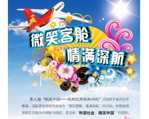 圖:微笑客艙 情滿深航。 第三屆微笑中國民航優秀服務評選活動將于本月拉開帷幕,該活動目的在于向社會各界展示民航乘務員良好的精神面貌和職業素養。借此契機深圳航空有限責任公司(Shenzhen Airlines Ltd.,簡稱深航)乘務部將同步啟動微笑客艙、情滿深航...
